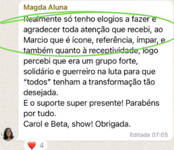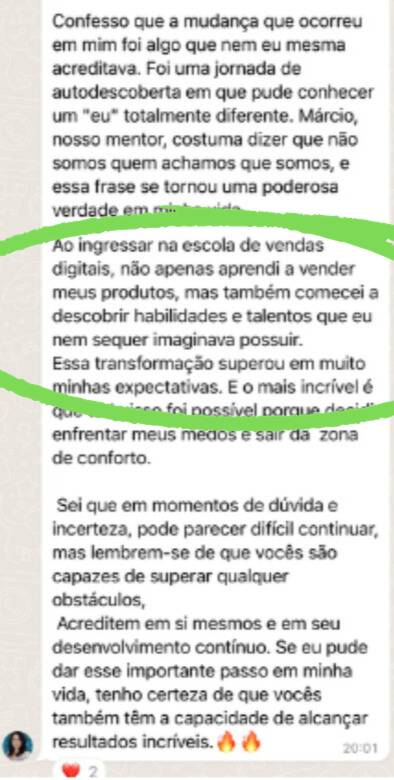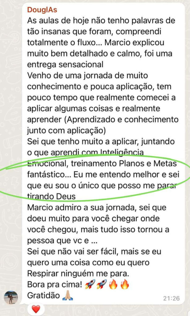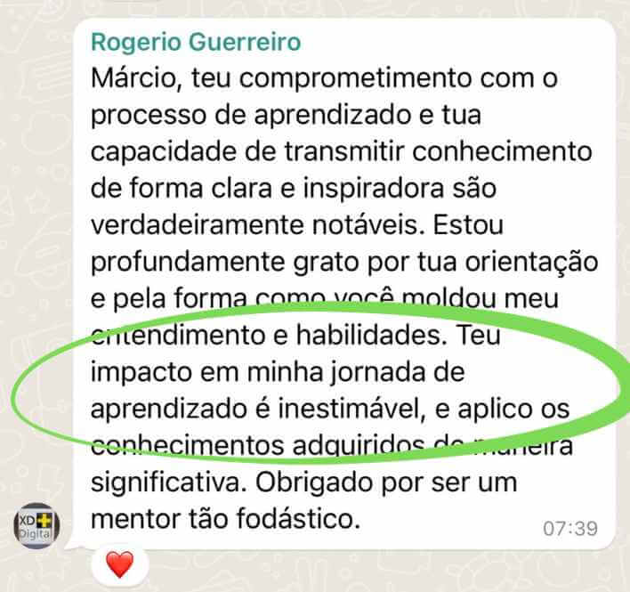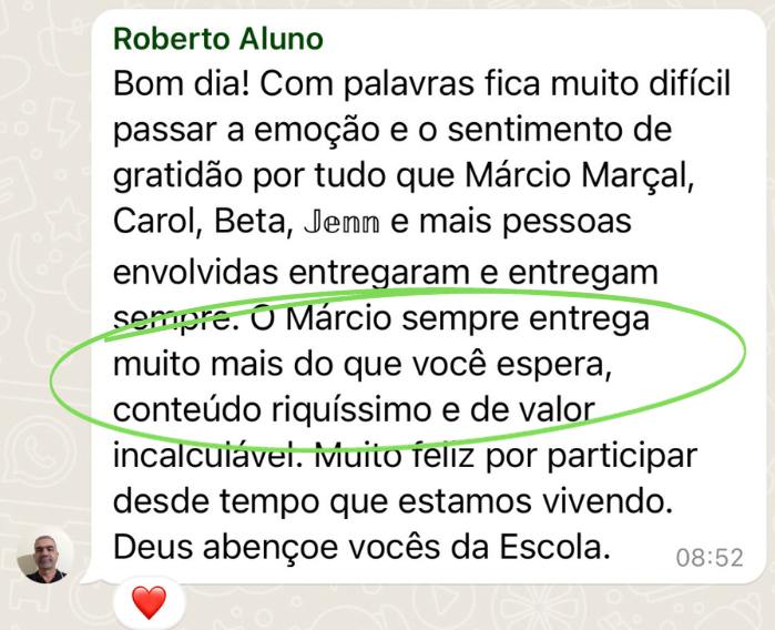 Quanto a Escola de Vendas Digitais, você literalmente nunca viu nada igual. O propósito do Marcio está totalmente conectado a tudo, e ele é incansável quando falamos em resultados dos seus alunos.