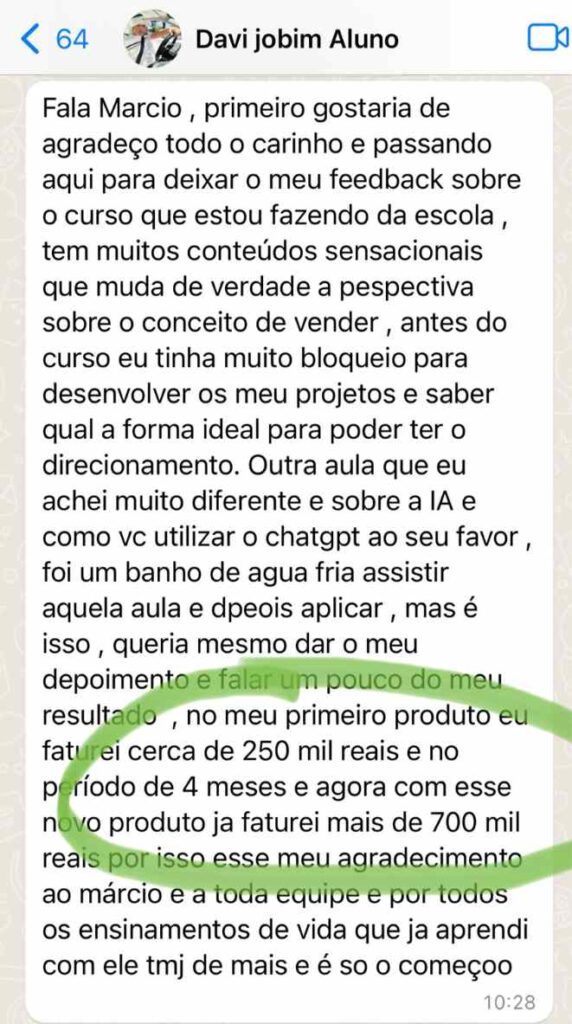 Além de todo o conhecimento que você vai encontrar na Escola de Vendas Digitais, o Marcio Marçal foi além pelo seu resultado.
