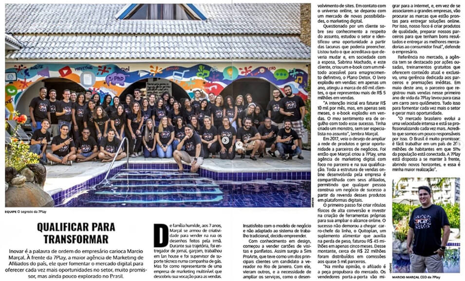 O Marcio criou a 7PLAY, se especializou na capacitação dos seus gigantescos times de vendas e formou milhares de pessoas. Inúmeros alunos mudaram completamente a sua realidade financeira e emocional, muitos se tornaram milionárias e vários ocupam posições elevadas no cenário digital brasileiro.