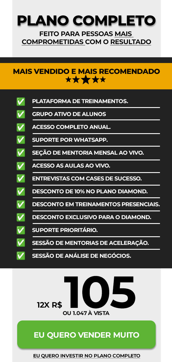 O Plano Completo é para as pessoas mais comprometidas e que querem resultados mais rápido.